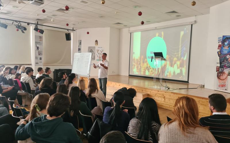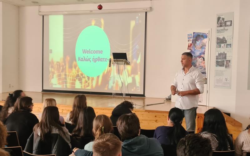 2023. november 22-én Gregg Sotiropoulost egyetemi adjunktust, az MM Publications oktatási tanácsadóját, motivációs trénerét láttuk vendégül. A görög gyökerekkel rendelkező Gregg, az USA-ban született, nevelkedett, New York-ból érkezett hozzánk, angol anyanyelvi beszélőként lendületes előadásmódjával és professzionális motivációs eszköztárával sikeresen feloldotta a diákok kezdeti tartózkodó hozzáállását.