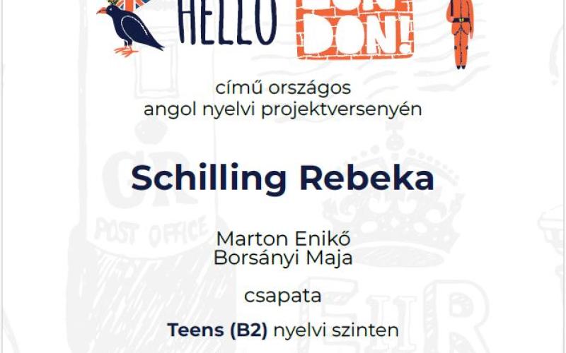A 2023/2024-es tanévben a 9.A és 9.E osztályból összesen 17 diák vett részt a HEBE Kft. által meghirdetett egyfordulós angol projektversenyen, melynek témája az Egyesült Királyság fővárosa, London volt. A diákok kreatív országismereti feladatokon keresztül bővítették nyelvtudásukat és ismereteiket. Valamennyi tanuló B2 szinten indult és ért el nagyon szoros versenyben szép eredményt.