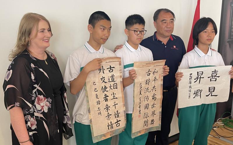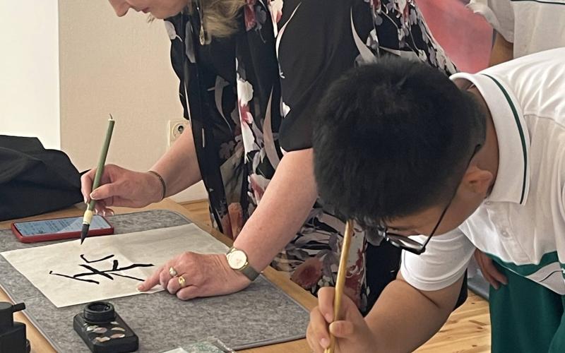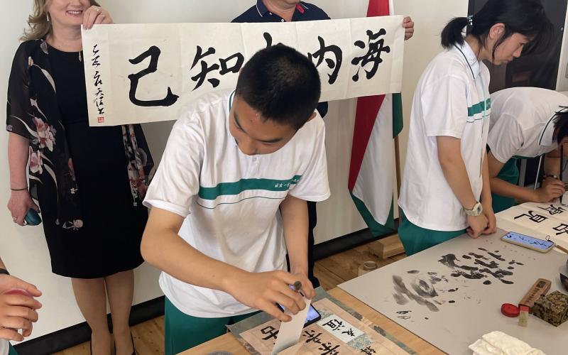 Ezt követően a kínai diákok egy különleges műsorral örvendeztették meg a közönséget, amelyben zongorán előadott darab, egy gyönyörű énekes szám és egy tradicionális kalligráfia bemutató is szerepelt. Az előadás lenyűgözte a jelenlévőket, és betekintést nyújtott a kínai kultúra különleges művészeti ágába. A műsor után a delegáció tagjai a diákönkormányzat diákjai által kínai nyelven megtartatott körbevezetés keretében megismerkedtek az intézmény épületével.