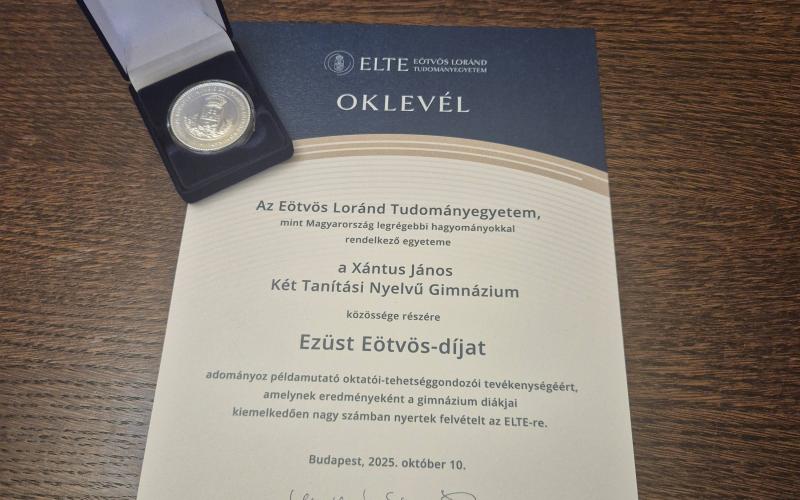 2025. november 10-én került sor az Eötvös Loránd Tudományegyetemen a hagyományos díjátadó ünnepségre, ahol a Xántus János Két Tanítási Nyelvű Gimnázium nagy megtiszteltetésben részesült.