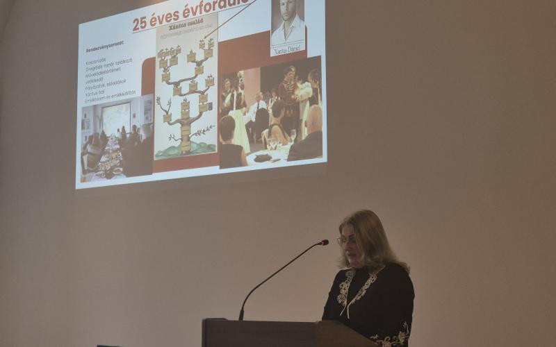 Az előadás középpontjában a gimnázium 35 éves fennállása, valamint Xántus János születésének 200. évfordulója állt. Igazgató asszony bemutatta, hogyan vált a Xántus az évek során kiemelkedő két tanítási nyelvű intézménnyé, ahol a magas szintű szakmai munka mellett mindig fontos szerepet kapott az érték- és hagyományápolás.