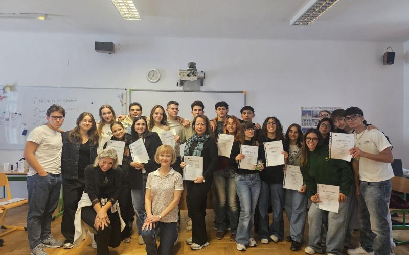 A hét témája a Mentális egészség és jólét (Mental health and wellbeing) volt. A hétfői ismerkedő játékok, az iskolák bemutatása, és a közös „brainstormingolás” után négy fős vegyes csapatokba szerveződve neki is láttak a munkának. Péntekre egy részletes PPT prezentációt, vagy videót kellett létrehozni a csapatoknak a témáról, megadott kritériumok szerint. A délutánt a budai Várnegyed interaktív felfedezésével zártuk. Kedden a projektmunkán kívül egy hangtálrelaxációs és -bemutató program részesei lehettünk, délután pedig meglátogattuk a nyáron nyílt EURÓPA ÉLMÉNYKÖZPONT-ot, ahol interaktív foglalkozás keretében ismerkedhettek a diákok az Európai Unió szervezetével és tevékenységével. Mivel a játékos kreatív alkotás is lehet örömforrás, szerdán a diákok - Végvári Gergely tanár úr vezetésével - négy fős vegyes csapatokban alkottak meg közösen egy rajzot úgy, hogy senki nem látta, hogy mit rajzol a másik, csak a saját részletét, melynek végén egy közös abszurd alkotás született minden csoportban. Délután a csoport dunai sétahajózás keretében gyönyörködhetett Budapest nevezetességeiben. Csütörtök délelőtt az olaszok egy táncórán is részt vehettek Ádám Ildikó tanárnő irányításával, délután pedig a Városligetet jártuk be, és a MAGYAR ZENE HÁZÁ-ban a Kreatív Hangtér csapatépítő programja után a diákok kellemesen ellazulhattak a Hangdóm audióvizuális Renoir vetítésén. Pénteken minden csoport előadta saját prezentációját a többieknek, és Kovács Dóra tanárnő 9-C-s tanulóinak, zárásként pedig a diákok megkapták díjaikat és okleveleiket, majd az esti záróbuli után szombaton a reptéren elbúcsúztak egymástól a márciusi olaszországi viszontlátásig.
