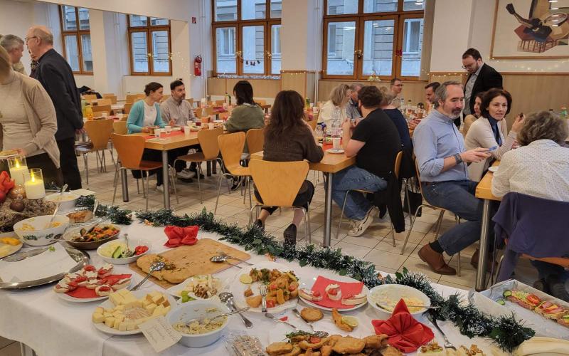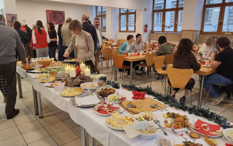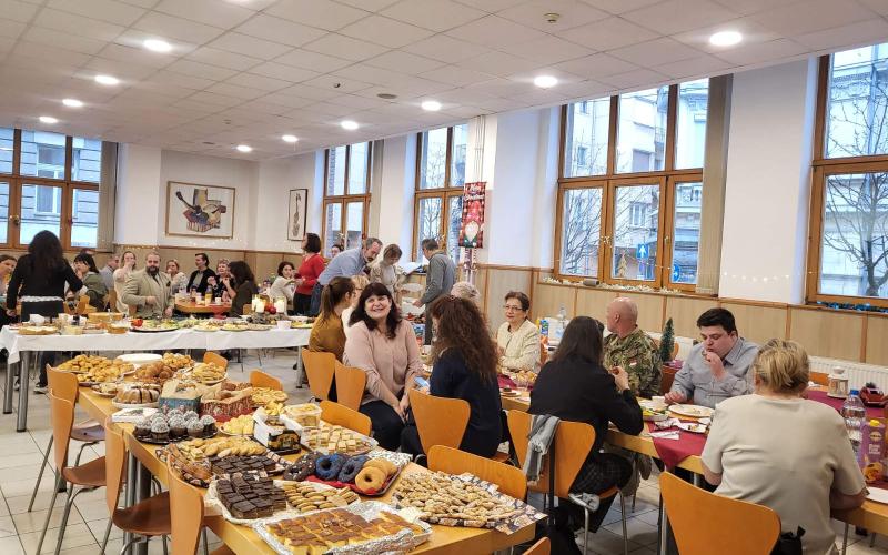 A gondosan megterített asztalok, a házi készítésű finomságok és az ünnepi díszítés meghitt légkört teremtettek, amely lehetőséget teremtett a kötetlen beszélgetésekre és az ünnepre való ráhangolódásra.