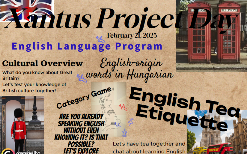 Az angol másodnyelv iránt érdeklődő tanulók érintőképernyős tableteken, applikációk segítségével oldottak meg Nagy-Britannia kulturális értékeivel és a magyar nyelvben megtalálható, angol eredetű szavakkal kapcsolatos quiz feladatokat. Angol szavak helyes sorrendbe állításával mondatokat alkottak és megtanultak bemutatkozni, végül csapatokban dolgozva összemérték angoltudásukat a „Category game” segítségével. A programot brit teaház zárta, ahol megismerkedtek a britek tradicionális teázási szokásaival is, végül skót édességet és teát kóstolhattak.