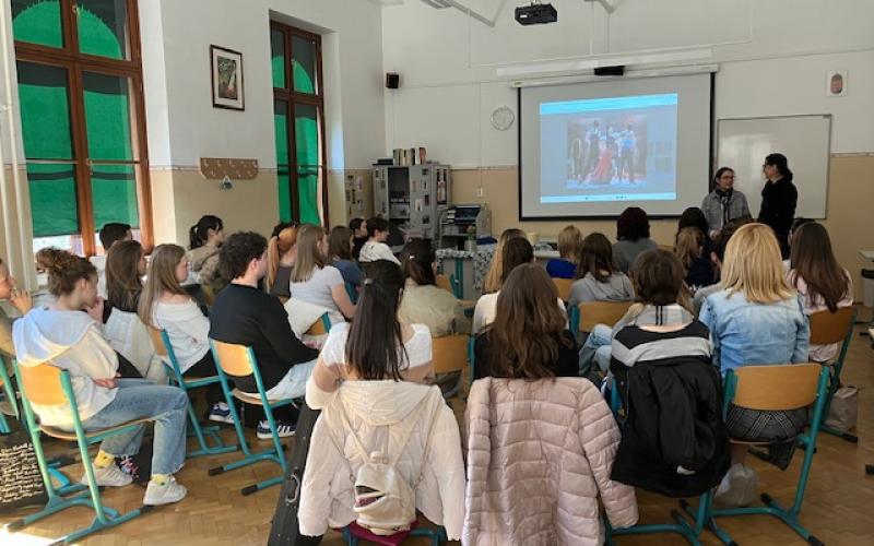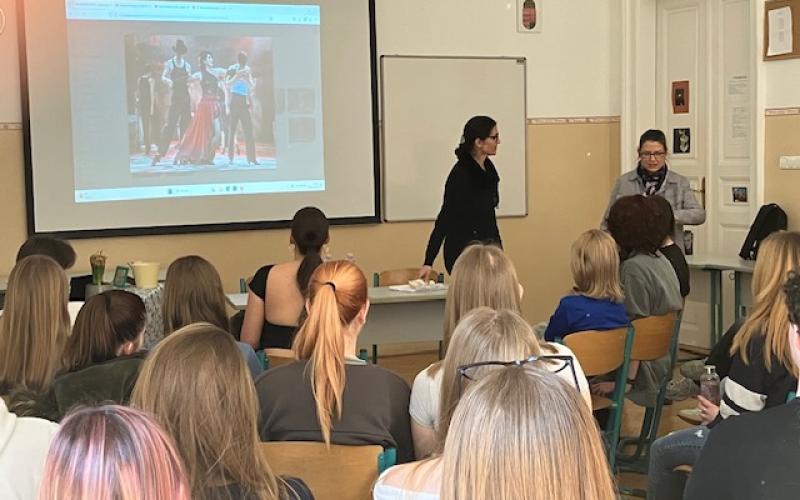 2025. március 22-én, szombaton a Nemzeti Színház épületében lépett fel a debreceni Csokonai Nemzeti Színház társulata. Egy igen különleges zenés-táncos előadást mutattak be, egy tangó-operát, María de Buenos Aires címmel. A darab címszereplője, Újhelyi Kinga művésznő pénteken az iskolánkba látogatott és mesélt nekünk a darabhoz fűződő személyes kapcsolatáról, az előadásról.