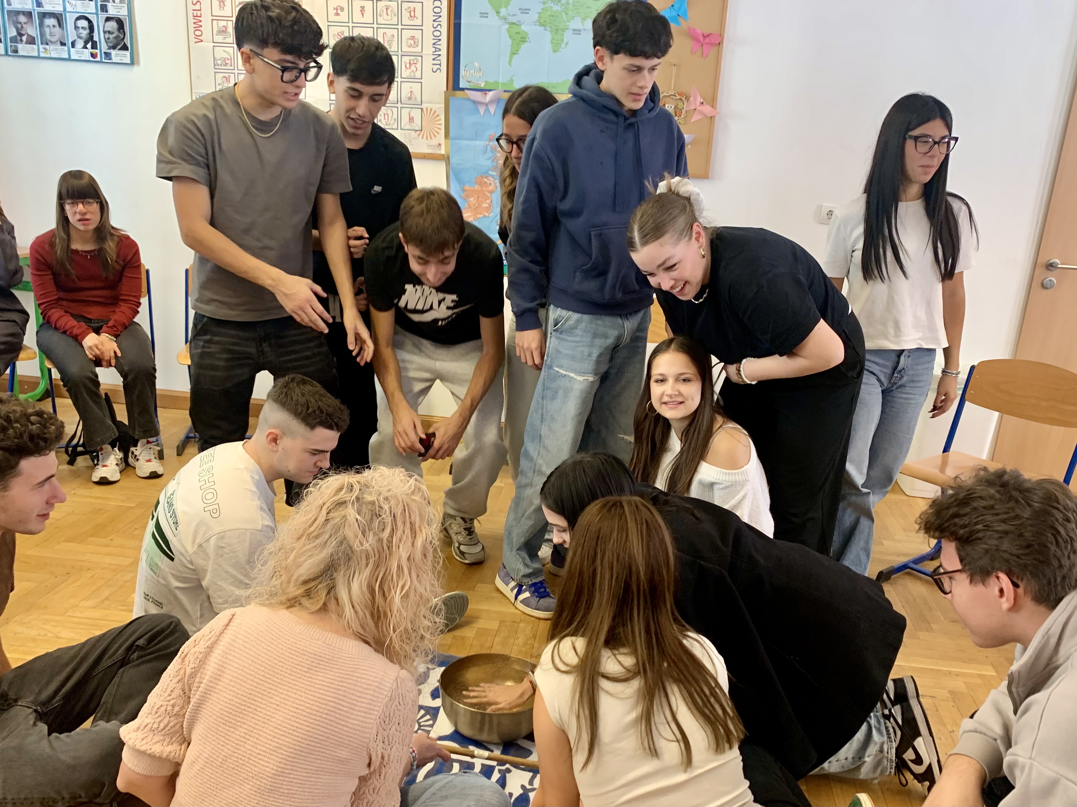 A hét témája a Mentális egészség és jólét (Mental health and wellbeing) volt. A hétfői ismerkedő játékok, az iskolák bemutatása, és a közös „brainstormingolás” után négy fős vegyes csapatokba szerveződve neki is láttak a munkának. Péntekre egy részletes PPT prezentációt, vagy videót kellett létrehozni a csapatoknak a témáról, megadott kritériumok szerint. A délutánt a budai Várnegyed interaktív felfedezésével zártuk. Kedden a projektmunkán kívül egy hangtálrelaxációs és -bemutató program részesei lehettünk, délután pedig meglátogattuk a nyáron nyílt EURÓPA ÉLMÉNYKÖZPONT-ot, ahol interaktív foglalkozás keretében ismerkedhettek a diákok az Európai Unió szervezetével és tevékenységével. Mivel a játékos kreatív alkotás is lehet örömforrás, szerdán a diákok - Végvári Gergely tanár úr vezetésével - négy fős vegyes csapatokban alkottak meg közösen egy rajzot úgy, hogy senki nem látta, hogy mit rajzol a másik, csak a saját részletét, melynek végén egy közös abszurd alkotás született minden csoportban. Délután a csoport dunai sétahajózás keretében gyönyörködhetett Budapest nevezetességeiben. Csütörtök délelőtt az olaszok egy táncórán is részt vehettek Ádám Ildikó tanárnő irányításával, délután pedig a Városligetet jártuk be, és a MAGYAR ZENE HÁZÁ-ban a Kreatív Hangtér csapatépítő programja után a diákok kellemesen ellazulhattak a Hangdóm audióvizuális Renoir vetítésén. Pénteken minden csoport előadta saját prezentációját a többieknek, és Kovács Dóra tanárnő 9-C-s tanulóinak, zárásként pedig a diákok megkapták díjaikat és okleveleiket, majd az esti záróbuli után szombaton a reptéren elbúcsúztak egymástól a márciusi olaszországi viszontlátásig.