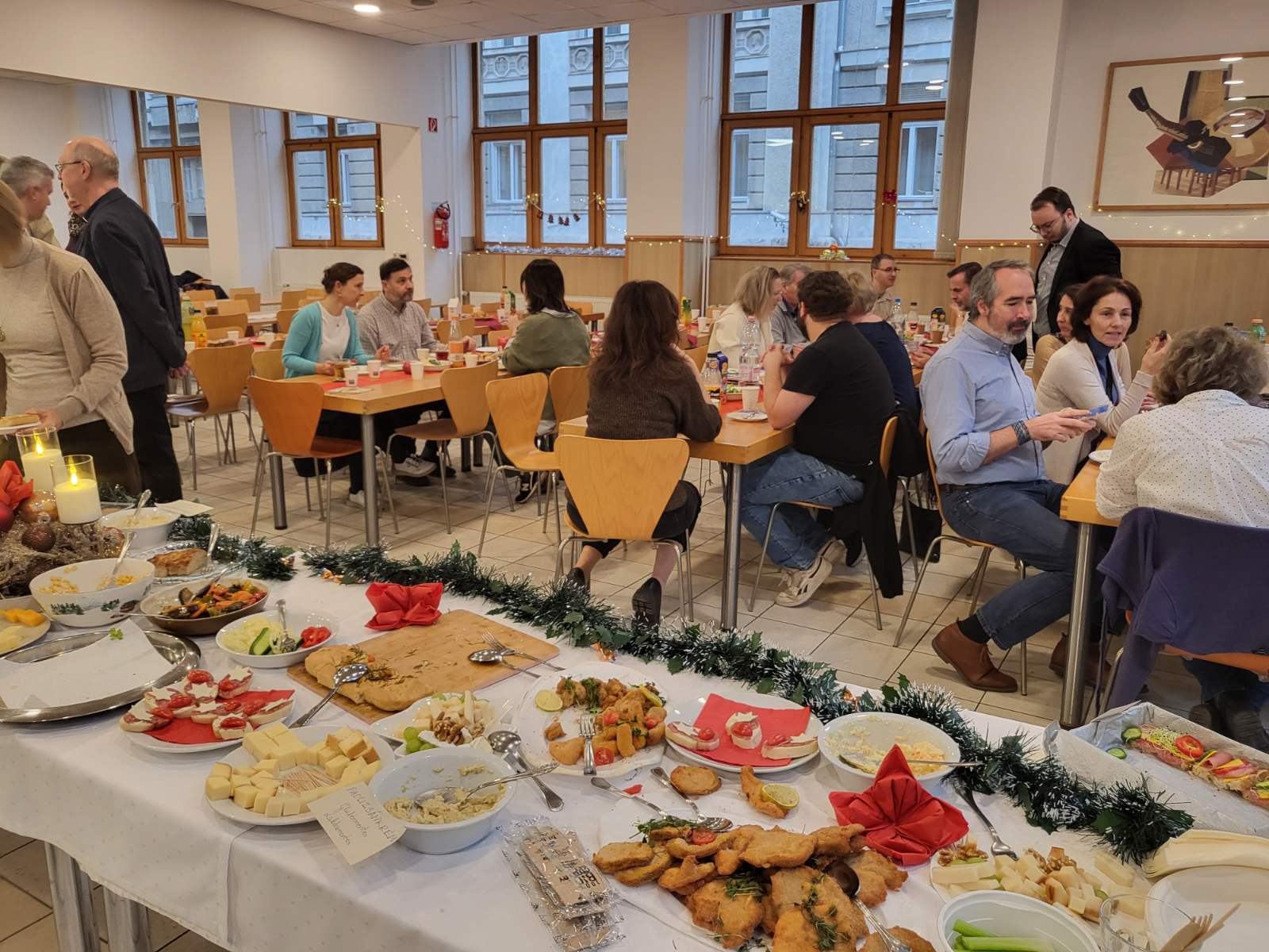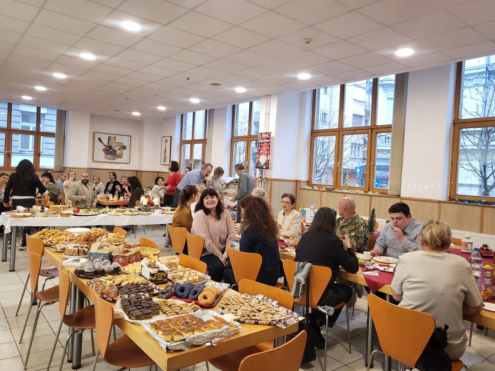 A gondosan megterített asztalok, a házi készítésű finomságok és az ünnepi díszítés meghitt légkört teremtettek, amely lehetőséget teremtett a kötetlen beszélgetésekre és az ünnepre való ráhangolódásra.